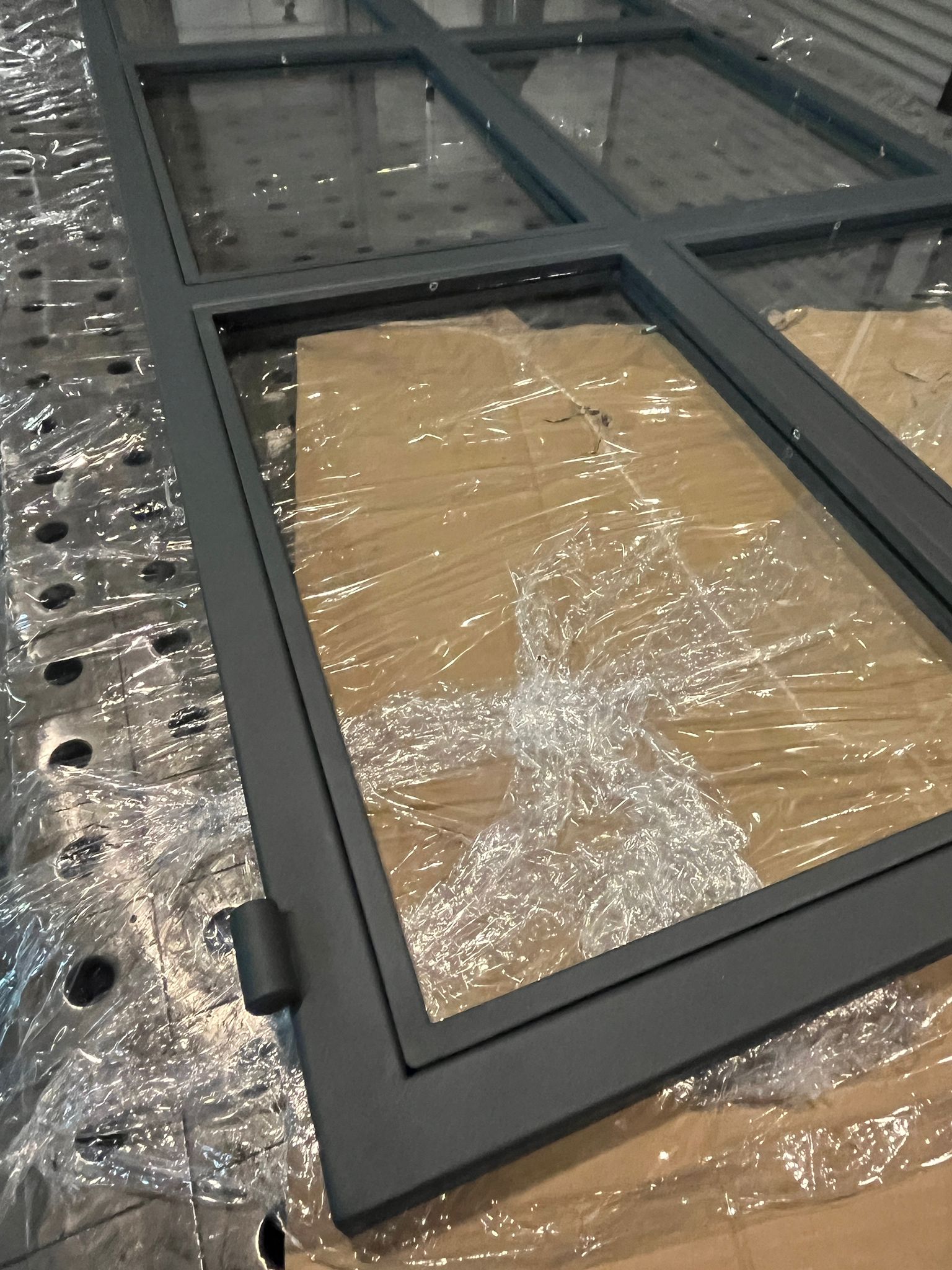 Szyba bezpieczna zabezpieczona folią .